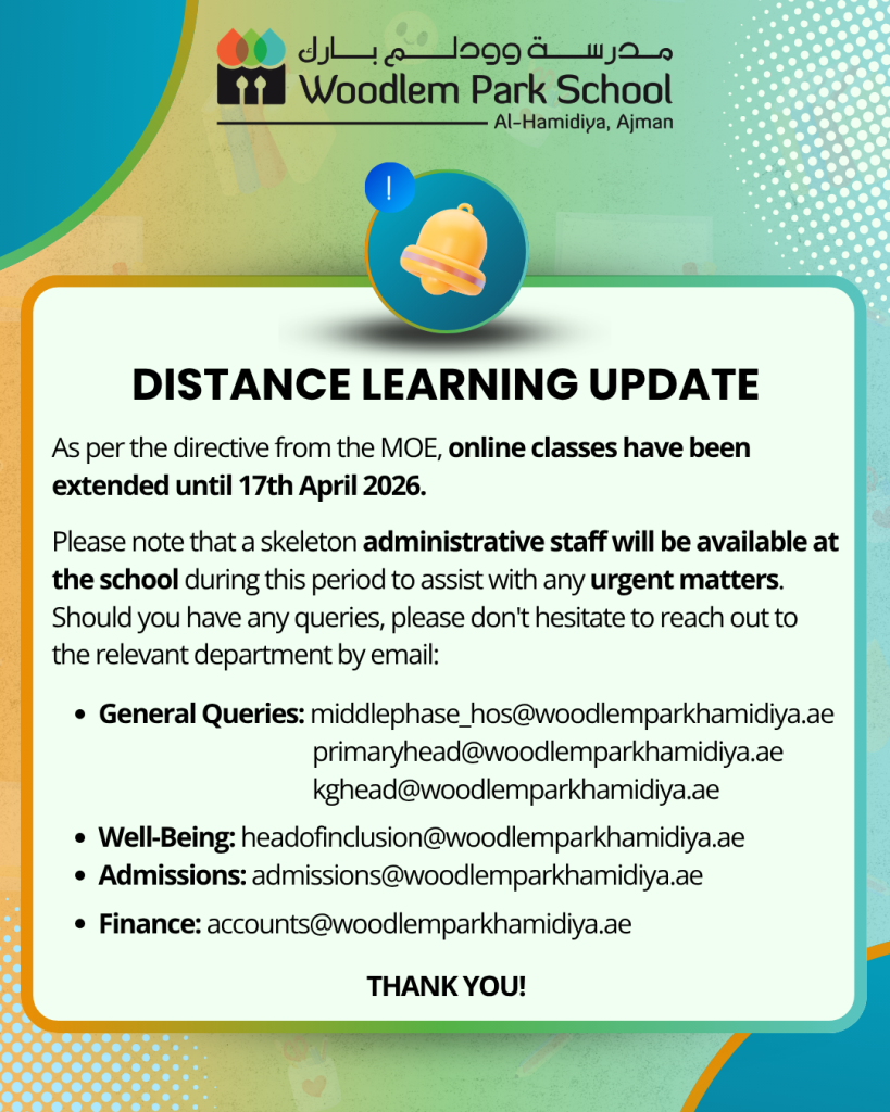 Admission to Woodlem Park Hamidiya is highly competitive. We seek students with strong academic records, motivation to improve, good citizenship, and a genuine desire to contribute positively to the school’s vibrant learning community.